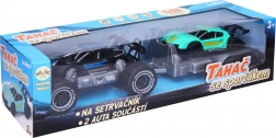 Deze robuuste trekker met personenauto biedt volop plezier voor kinderen die van auto’s en snelheid houden. Beide voertuigen zijn uitgerust met een vliegwiel, dus even aanduwen en ze rijden vanzelf. Dankzij de compacte afmetingen is de set geschikt om thuis en onderweg mee te spelen.