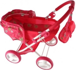 Deze stijlvolle kinderwagen is licht en stabiel, wat hem ideaal maakt voor elk spel. Hij is gemaakt van een kwalitatief metalen frame en biedt eenvoudig besturen dankzij grote plastic wielen. Niet alleen heeft hij een inklapbare kap, maar hij bevat ook een praktische tas op het handvat voor alle benodigde spullen van de kleine mama. Onder de kinderwagen bevindt zich ruimte voor extra benodigdheden. Voor eenvoudig opbergen kan de kinderwagen eenvoudig worden opgevouwen.