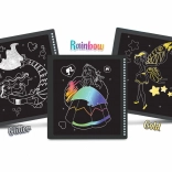 Ontdek de magie van kleuren met Barbie in een betoverende fantasystijl dankzij deze kras-sketchbook. Gebruik de meegeleverde pen om de levendige regenboogkleuren onder het zwarte oppervlak te onthullen.