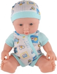 Deze schattige babypop is ideaal voor de eerste rollenspellen. Na het indrukken van de knop op de rug klinken verschillende kindergeluiden – gelach, gebrabbel en gehuil – wat het spel realistischer en leuker maakt. Het compacte formaat van 25 cm past in kleine handjes en stimuleert zorgzaamheid, communicatie en de ontwikkeling van empathie.
