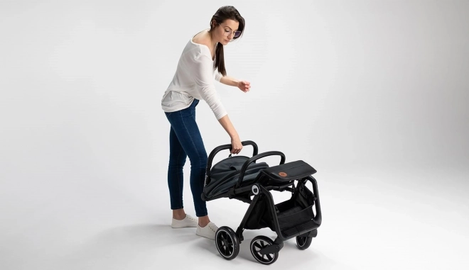 Voor maximaal comfort van je kind is er een traploos verstelbare rugleuning tot liggende positie, een verstelbare voetensteun van eco-leer en een XXL-kap met UPF50+ met ventilatievenster. De veiligheid wordt gegarandeerd door 5-puntsgordels, reflecterende elementen en een betrouwbare voetrem. De praktische uitrusting omvat een boodschappenmand (tot 3 kg), een bekerhouder, een beenbedekking en een draagriem voor eenvoudig dragen na het inklappen.