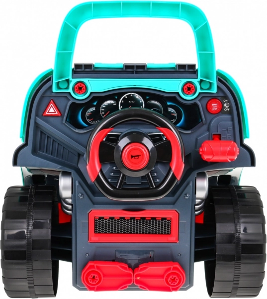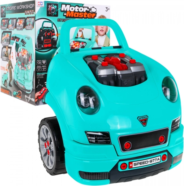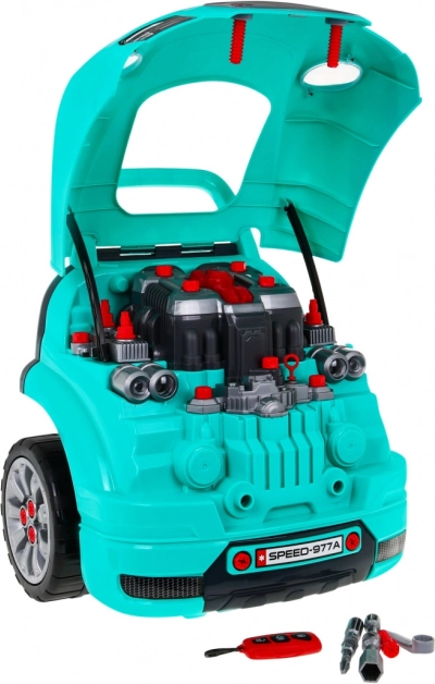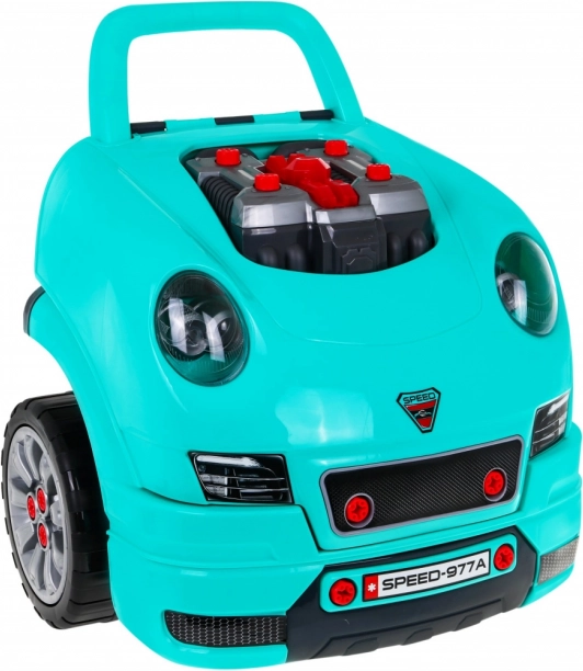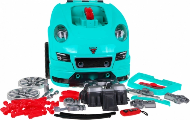De set bevat 61 onderdelen, waaronder wielen met wieldoppen, schroeven, gereedschap en reserve motoronderdelen. De praktische opbergvak onder het stuur biedt ruimte voor alle kleine spullen en accessoires; de speelgoedset heeft ook een greep voor gemakkelijk dragen. Ideaal voor kinderen vanaf 3 jaar die willen ontdekken hoe een auto werkt en hun vaardigheden en verbeelding willen ontwikkelen.