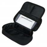 Het etui is stevig, met een interne scheidingswand en een ritsvak, biedt voldoende ruimte voor schrijfbenodigdheden.