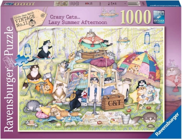 Stap binnen in de speelse wereld van kattenstreken met het motief „Luie zomermiddag”. Deze afbeelding uit de populaire serie CRAZY CATS biedt grappige details en een fijne uitdaging voor iedereen die graag ontspant met puzzelen.
