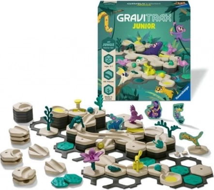 Duik in een exotische wereld vol fantasie. De Jungle startset van GraviTrax Junior is speciaal ontworpen voor kinderen – stimuleert creativiteit, fijne motoriek en logisch denken. De onderdelen zijn kleurrijk, robuust en intuïtief te combineren, zodat kinderen gemakkelijk hun eerste knikkerbaan bouwen.