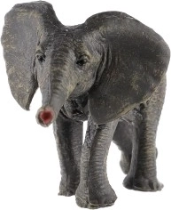 De miniatuur van de jonge olifant biedt een realistische uitstraling en details die zowel kinderen als volwassenen fascineren.