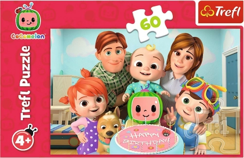 Puzzel Cocomelon, Geweldige dag met 60 stukjes biedt geweldig vermaak voor alle kleine fans van Cocomelon-avonturen. Na het leggen ontstaat er een afbeelding van 330x220 mm.