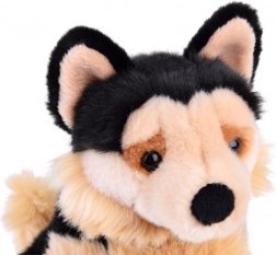 Deze zittende pluchen Duitse herder uit de eco friendly-lijn is ontworpen met oog voor detail. Realistische verhoudingen, sprekende ogen en de combinatie van beige en zwarte vacht maken hem tot een geweldige vriend voor kleine dierenliefhebbers. Het zachte oppervlak voelt prettig aan en nodigt uit om te knuffelen.