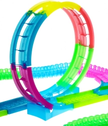 De lichtgevende racebaan bevat een 360° looping, een LED-autootje en is geschikt voor kinderen vanaf 3 jaar. De baan is eenvoudig te monteren en biedt geweldig speelplezier terwijl het de fantasie en motorische vaardigheden van kinderen stimuleert.