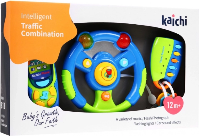 Ontdek het plezier van spelen met de interactieve set voor kleine chauffeurs, die een telefoon, sleutels en stuur bevat, allemaal ontworpen voor kinderen vanaf 12 maanden. De set biedt een geweldige combinatie van geluiden, lichten en ergonomisch ontwerp.