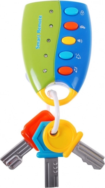 De sleutels met afstandsbediening hebben vijf knoppen die verschillende geluiden activeren, zoals een claxon of alarm, voor een verhoogde speelervaring.