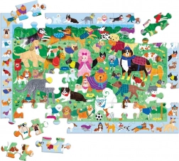 De Mudpuppy puzzel Leg en Zoek: Hondendag combineert slim puzzelen met een zoekspel dat observatievermogen, geduld en fijne motoriek ontwikkelt. Nadat de scène vol honden is gelegd, kunnen kinderen meer dan 40 verborgen figuurtjes zoeken in de rand rond de afbeelding – ideaal vermaak voor kinderen vanaf 4 jaar.
