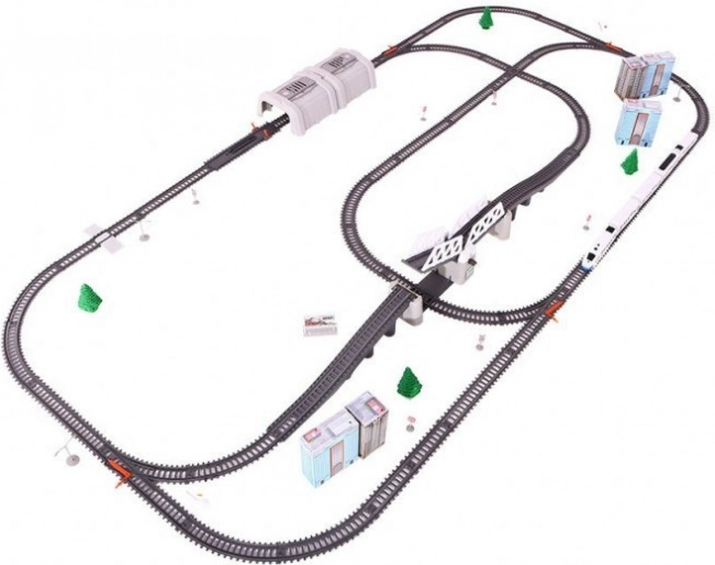 Ga op een spannend spoorwegavontuur met onze gedetailleerde treinset. Dit speelgoed, gemaakt van hoogwaardig plastic, bevat een locomotief met snelheidsregeling en personenrijtuigen die samen een realistisch baanmodel vormen met een tunnel en een beweegbare brug.