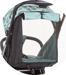 Uitschuifbare kap met zonneklep, kijkvenster en meshpanelen voor betere luchtcirculatie beschermt en geeft je tegelijk voortdurend zicht op je kind.