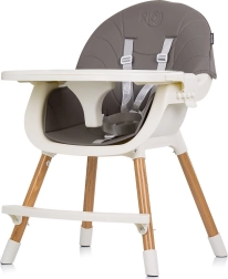 Veiligheid wordt gewaarborgd door 5-punts gordels en stabiele houten poten met antislip doppen. Het verschuifbare blad met afneembaar bovendeel maakt serveren en schoonmaken makkelijker, terwijl de voetensteun een juiste zithouding ondersteunt.