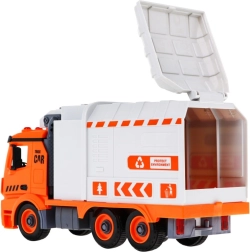 Ontdek een realistische speelgoedset die op een leuke manier duurzaamheid bijbrengt. De vuilniswagen met een mechanische zijarm voor het tillen van containers, een openende achterklep en licht- en geluidseffecten zorgt voor uren creatief spel. Kinderen trainen hun fijne motoriek dankzij de mogelijkheid om het voertuig los te schroeven en opnieuw te monteren met de meegeleverde schroevendraaier met verwisselbare bits.