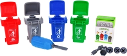 De set bevat een afbeeldingskaartengids die uitlegt hoe je afval correct scheidt: groen – keuken-/bioafval, blauw – recyclebaar afval, grijs – restafval, rood – gevaarlijk afval. Zo ontwikkelen kinderen op natuurlijke wijze ecologische gewoonten en verantwoordelijkheid voor het milieu.