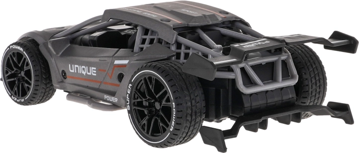 De robuuste metalen body verhoogt de duurzaamheid, terwijl rubberen banden zorgen voor betere grip en realistischer rijgedrag.