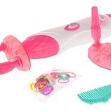 Vlechtenset is ontworpen voor eenvoudige en leuke haarcreaties. Deze vrolijke set bevat een plastic vlechtmachine met verwisselbare opzetstukken, een kam en 50 haarelastieken. Voeg eenvoudig 2 tot 3 lokken haar toe en druk op de knop om mooie vlechten te maken!