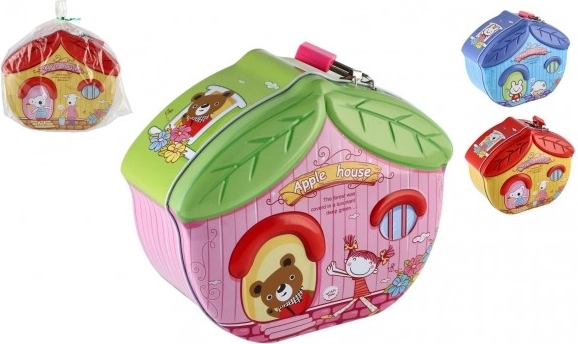 Vrolijke kleuren en illustraties in de vorm van een huisje motiveren kinderen om te sparen en fleuren elke kinderkamer op.