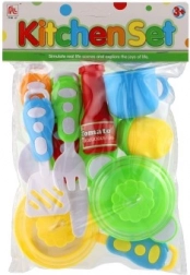 Deze kleurrijke set kinderservies biedt kinderen alles wat ze nodig hebben voor leuk koken en serveren. Dankzij de realistische accessoires leren kleine koks de basis van tafelen en keukenactiviteiten, terwijl ze fijne motoriek, communicatie en verbeeldingskracht ontwikkelen.