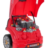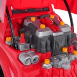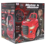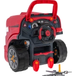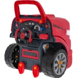 Geweldige, goed uitgeruste, interactieve bouwset voor kleine monteurs voor kinderen vanaf 3 jaar. De set bestaat uit een vrachtwagencabine met een opklapbare motorkap, stuur, dashboard en een praktische handgreep en wieltjes om te verplaatsen. Onder de motorkap van de truck bevinden zich tal van onderdelen om te monteren en te demonteren. Uw kind kan de motor, bougies en zelfs de wielen repareren. Op het dashboard zit een startknop voor het voertuig met motorstart- en rijgeluiden, een stuur met claxon en een noodzoemer. Onder het stuur bevindt zich een opbergruimte voor al het nodige gereedschap, schroeven en knoppen. De set is bovendien uitgerust met een autopilot die de lichtmodules (brandende koplampen en bovenkant van de motor) en geluidsmodules (geluid van openen en sluiten van de auto, claxon) kan bedienen. Voeding: 3 x AA 1,5V batterijen - auto (niet inbegrepen), CR2025 3V - afstandsbediening (inbegrepen).