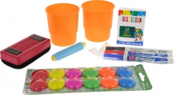 • Complete set – krukje, plank, stiften, krijtjes, magneten, bekers, spons en klemmen.
