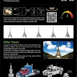 Dit prachtige Eiffeltoren model met afmetingen van ca. 15,3 x 5,1 x 5,1 cm is niet alleen een geweldige aanvulling, maar ook een uitdagende onderneming voor enthousiastelingen en verzamelaars. Aanbevolen leeftijd voor het bouwen van het model is vanaf 14 jaar.