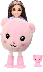 De Barbie Chelsea Cutie Reveal-pop brengt uitpakplezier vol ontdekkingen. In de verpakking vind je een kleine Chelsea-pop verstopt in een pluchen beertjeskostuum, stijlvolle accessoires en een mini-huisdiertje. Het bovenste deel van het kostuum kan na omkeren veranderen in een donzige jas en de kostuumkop wordt een mandje voor het huisdiertje.