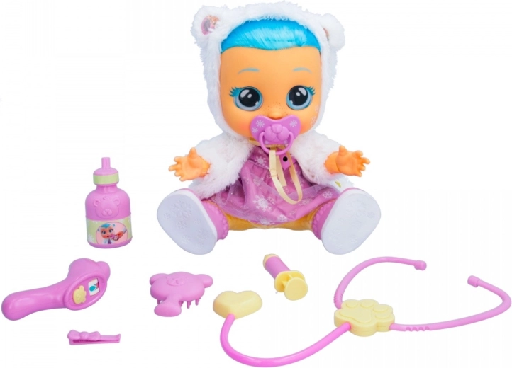 Als Kristal ziek wordt, kunnen kinderen voor haar zorgen met behulp van fantasiespulletjes en accessoires. Ze bevat meer dan 30 geluiden die haar realistische reacties aanvullen.