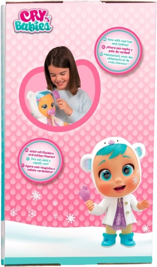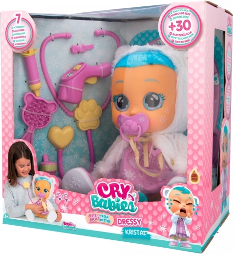 De pop Cry Babies Kristal is nu verkrijgbaar in een elegante outfit die nieuwe speelmogelijkheden garandeert. Ze reageert op zorg en liefde, waardoor ze een echte baby nabootst.