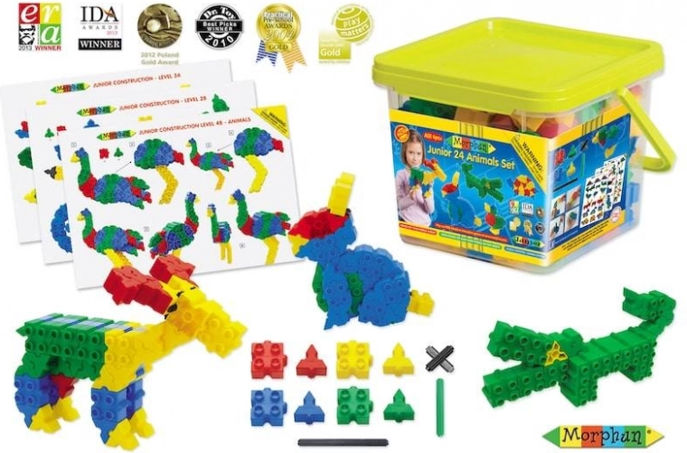 Morphun Junior constructieblokjes met 252 onderdelen maken het mogelijk om verschillende dieren en andere modellen te bouwen, zoals bloemen, boten of koetsen. Deze set stimuleert de creativiteit van kinderen en verbetert de motoriek.