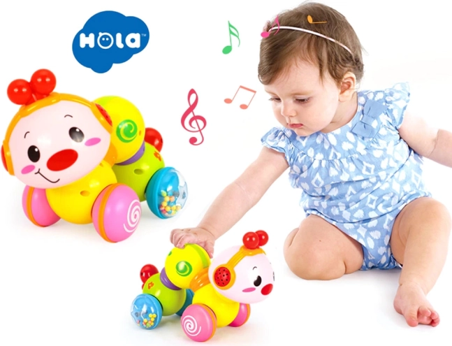 De interactieve rijdende rups Happy Wiggle Worm is het ideale speelgoed voor baby’s en peuters. Na een druk op de rug spant de rups zich en rijdt hij vooruit over een vlak oppervlak, terwijl de kop van kleur verandert en aangename melodieën klinken. De draaibare kop stimuleert nieuwsgierigheid en de fijne motoriek.
