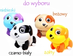 Dit vrolijke plastic hondje is een geweldige metgezel voor de eerste ontdekkingen. Na het opwinden rijdt het over de vloer, kwispelt vrolijk met de staart en knippert met de ogen – dit motiveert kinderen om te kruipen en actief te spelen.