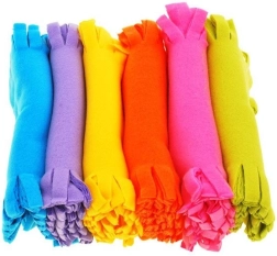 Maak je eigen superzachte fleecedeken zonder te naaien! Deze creatieve set bevat ongeveer 45 vierkanten in 6 kleuren met franje, die je eenvoudig aan elkaar knoopt. Het is een leuke en ontwikkelingsgerichte activiteit voor kinderen die creativiteit en fijne motoriek stimuleert en zorgt voor een kleurrijke en warme deken voor koele avonden.