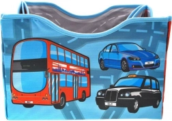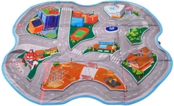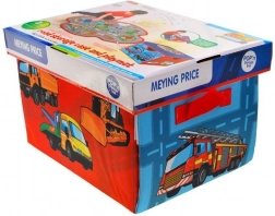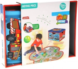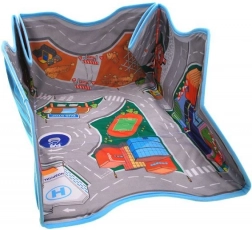 Praktische set 2-in-1 combineert een opbergbox voor speelgoed en een textiele speelmat met straatjes. Kinderen kunnen er met autootjes over wegen, rotondes en kruispunten rijden, terwijl na het spelen alles eenvoudig kan worden opgeruimd in de stevige box met klittenbandsluiting.