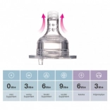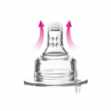 De speen is gemaakt van lagen siliconen met verschillende diktes voor een dynamische aanpassing van de vorm tijdens het zuigen.