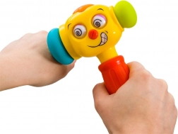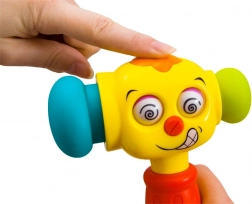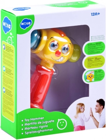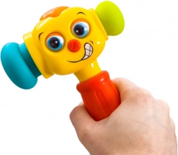 De vrolijke interactieve hamer valt bij kinderen in de smaak dankzij het kleurrijke design, het grappige gezicht en de combinatie van licht- en geluidseffecten. Bij het indrukken van de bovenste knop speelt hij 5 leuke melodieën af en tijdens het spel gaat het lichtje op de kop branden. Elke tik activeert bovendien effecten die de natuurlijke nieuwsgierigheid stimuleren en aanzetten tot verder ontdekken.