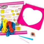 De set bevat het frame, gekleurde lusjes, accessoires en een geïllustreerde handleiding – gewoon openen en beginnen met creëren. Ideaal voor beginners en jonge liefhebbers van handwerk.