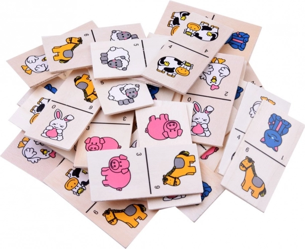 Populair beeldendomino voor kinderen in een praktische houten doos bevat 28 steentjes met dieren (biggetje, hennetje, konijntje, koetje, paardje, poesje, schaapje). Een geweldige familiespel om logica, concentratie en geduld te ontwikkelen – ideaal voor thuis, onderweg en in de kleuterschool.