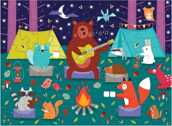 Duik in de wereld van bosvrienden rond het kampvuur. Deze geurende puzzel brengt niet alleen plezier bij het leggen, maar ook een speels zintuiglijk element – drie speciale stukjes ruiken naar marshmallow, cacao en kaneel. Dankzij de diepe kleuren, de matte afwerking en de gladde achterzijde liggen de stukjes prettig in de hand en passen ze perfect in elkaar.