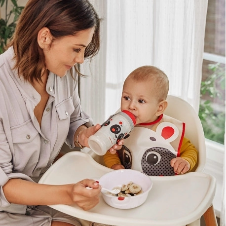 Zachte kunststof slab met een grote opvangzak om kruimels en eten op te vangen, beschermt kleding tijdens het voeren. Heeft een comfortabele klittenbandsluiting en eenvoudig onderhoud. Past perfect... Meer tonen