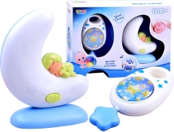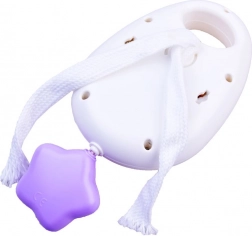 Er zit ook een mobiel muziekdoosje bij dat je eenvoudig aan de kinderwagen, het bedje of het autostoeltje kunt bevestigen. Trek simpelweg aan het koord en het muziekdoosje begint een kalmerende melodie te spelen, terwijl draaiende sterretjes je kleintje fascineren en tot rust brengen.