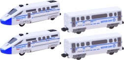 Locomotief, 3 personenrijtuigen, rails (inclusief wissels), tunnel, bomen, verkeers- en spoorborden