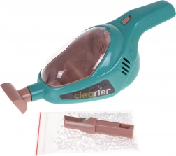 De interactieve handstofzuiger op 3× AA (niet inbegrepen) heeft interne verlichting, realistisch zuiggeluid en een echte functie voor het opzuigen van kleine polystyreen bolletjes. Dankzij de verwisselbare opzetstukken (zuigmond en kierenzuiger) kunnen kinderen verschillende schoonmaaksituaties uitproberen.