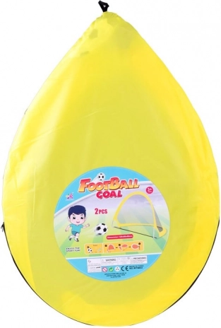 Praktische set voor kleine en grote voetballers bevat 2 zelfuitklappende voetbaldoelen, een bal met pomp, haringen voor bevestiging in de grond en een draagtas. Dankzij het directe uitklappen en lichte transport speel je overal en altijd voetbal op een vlakke ondergrond.