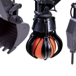 De graafmachine is uitgerust met drie verwisselbare accessoires: een pneumatische hamer, een schep en een rubberen grijpballetje. Bovendien zorgen de zachte rubberen rupsbanden voor soepele bewegingen op verschillende oppervlakken. Met een lengteschep van 46 cm maakt graven bijzonder efficiënt.