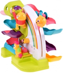 Het volgen en loslaten van de knikkers ondersteunt de oog-handcoördinatie, concentratie en het begrip van oorzaak en gevolg.