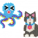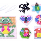 Meerdere zakjes in diverse kleuren en verschillende vormen van pegboards en sjablonen maken het mogelijk om dieren, geometrische patronen en figuurtjes te creëren. De creativiteit kent geen grenzen.