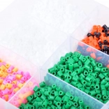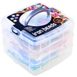 De stevige box met vakjes houdt de kralen overzichtelijk gesorteerd en veilig opgeborgen. Het praktische handvat maakt meenemen op reis of naar school eenvoudig.